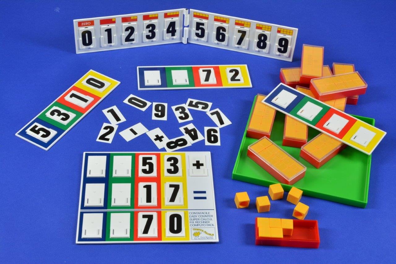 Il Contafacile è un rigoroso modello del nostro sistema di numerazione, si presenta come un gioco e si è rivelato uno strumento prezioso per la sua semplicità e versatilità. Consente una matematica del "fare" e attraverso attività di gioco e laboratori conduce i bambini alla "scoperta" di tutti i concetti fondamentali previsti nei programmi di tutta la Scuola Primaria. I Leggii, oltre a contribuire a creare un clima di Gioco, favoriscono scoperte autonome.