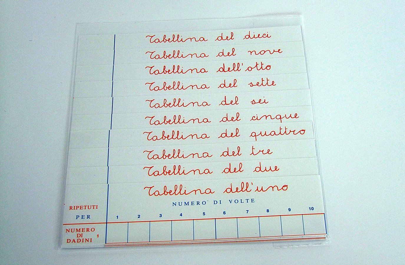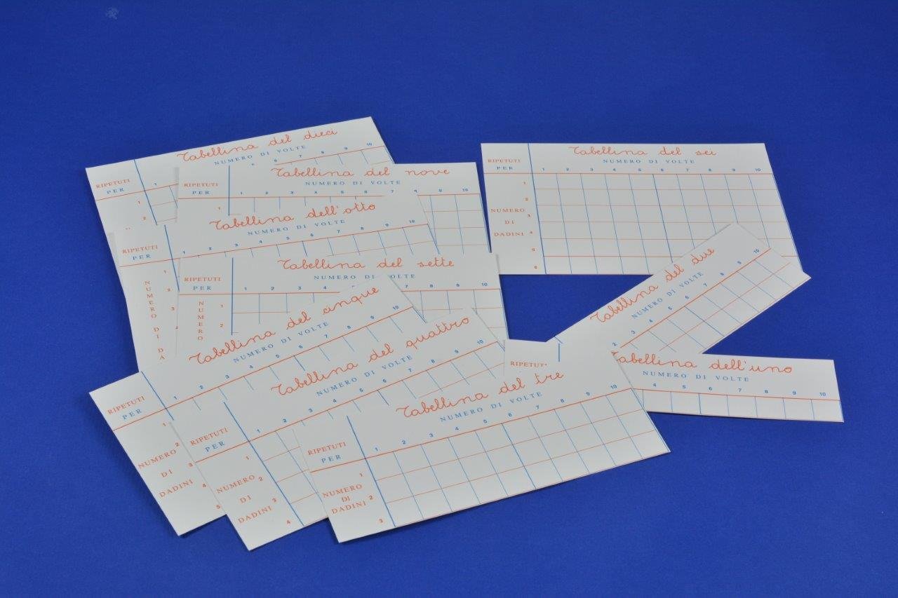 La Tabellina Simpatica è formata da dieci Cartoncini, ognuno dei quali con l’uso dei cubetti o altro materiale consente di "costruire" le singole Tabelline, dalla tabellina dell’uno alla tabellina del 10.