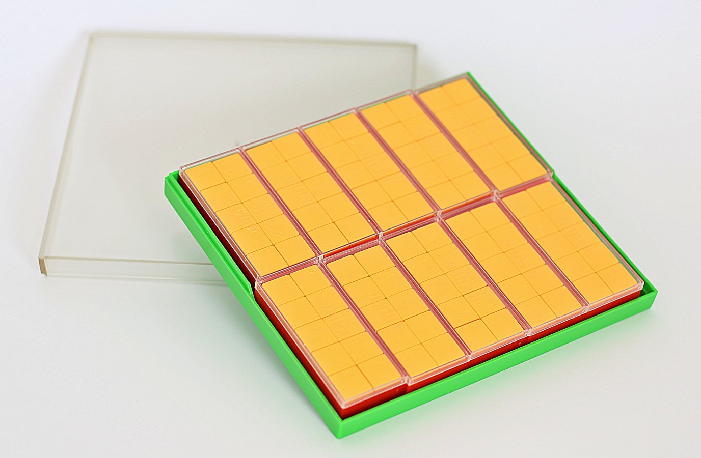 Possiamo vedere e toccare con mano il centinaio, con le sue dieci decine e le cento unità, che costituiscono un modello del nostro sistema di numerazione.Tutti i concetti fondamentali previsti nei programmi di tutta la scuola primaria vengono acquisiti piacevolmente, e %u201Dscoperti%u201D dai bambini attraverso esperienze e giochi effettuati in classe con il materiale strutturato.